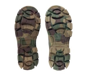 Suela con diseño especial antideslizante y con sistema de absorción de energía en el tacón